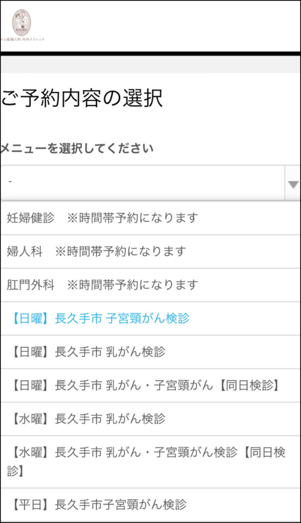 ※妊娠判定(初めての検査)は「婦人科」をご選択ください。